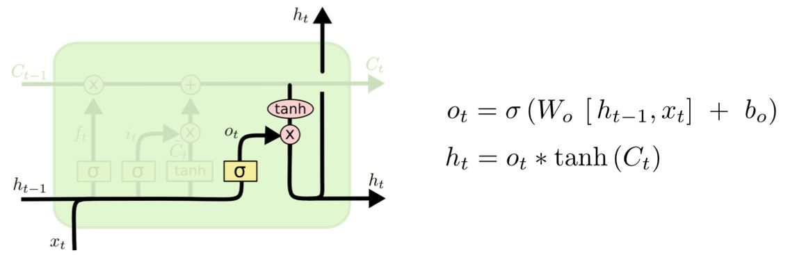 어떤 출력값을 출력할지 결정하는 과정으로 최종적으로 얻어진 Cell State 값을 얼마나 빼낼지 결정하는 역할을 해줍니다.