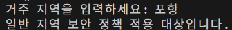 print("일반 지역 보안 정책 적용 대상입니다.")