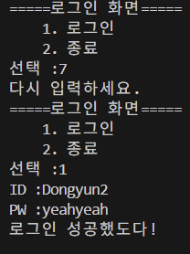 while ((ID == "Dongyun2") and (PW == "yeahyeah")):