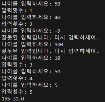 print("잘못된 입력입니다. 다시 입력하세여.")