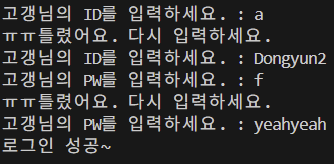 while ((ID != "Dongyun2") or (PW != "yeahyeah")):