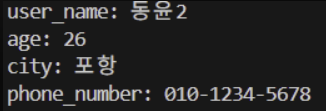 info(user_name = "동윤2", age = 26, city = "포항", phone_number = "010-1234-5678")