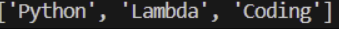 print(list(map(lambda sentences: sentences.split()[0], sentences))) # ['Python', 'Lambda', 'Coding']