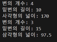 print(f"삼각형의 넓이: {(self.base * self.height) /2}")