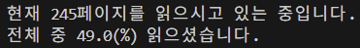 print(f"전체 중 {result}(%) 읽으셨습니다.")