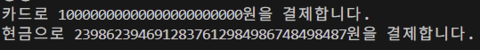 print(f"현금으로 {amount}원을 결제합니다.")