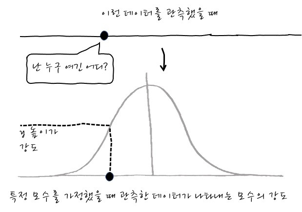 관측한 데이터 대한 y에 해당하는 높이 = 분포에 대한 Strength = Likelihood