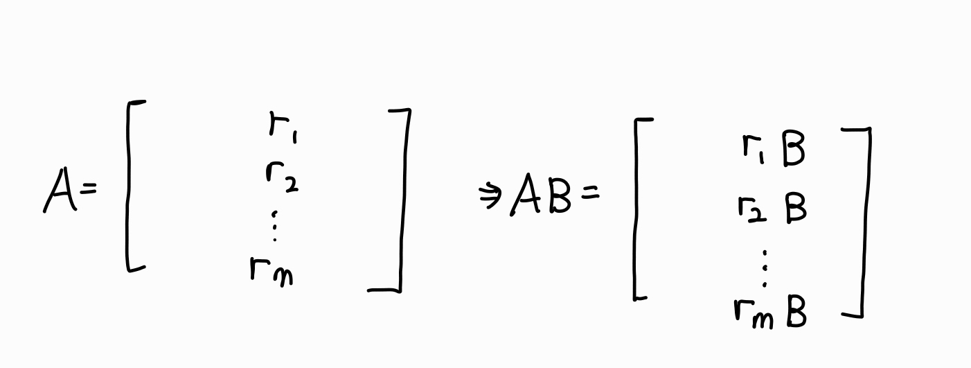 A를 행벡터들로 나타내면 C=AB의 각 행은 A의 행벡터와 B를 곱한 것과 동일하다.