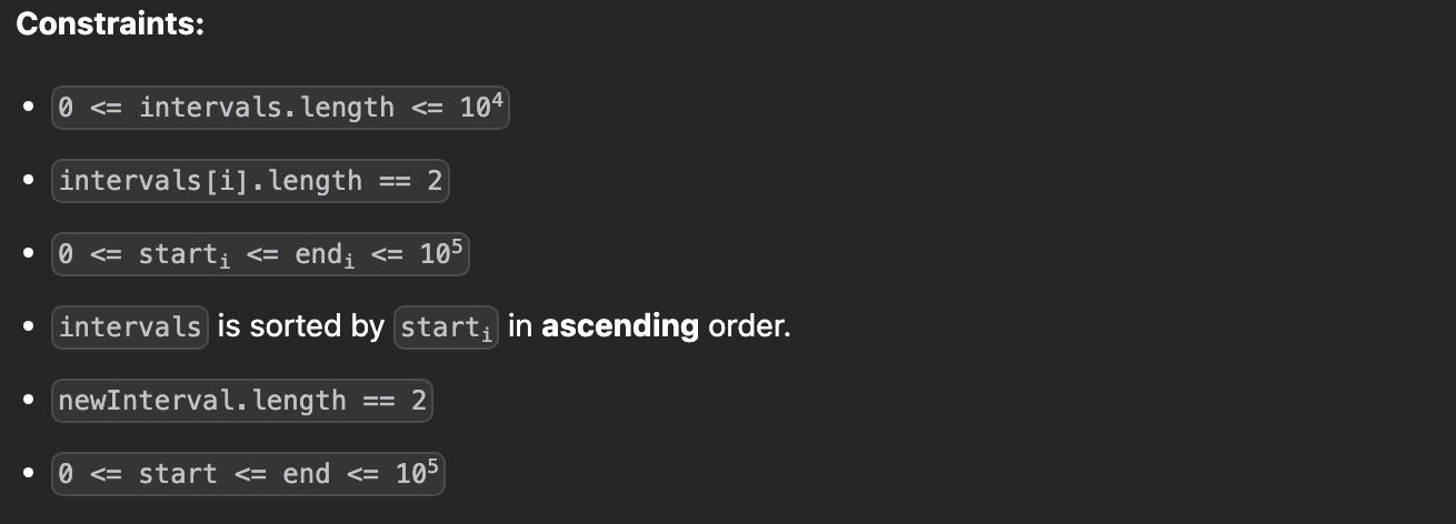 newInterval이 몇 개의 interval과 겹치는지는 binary search 한 번으로는 알 수 없음.