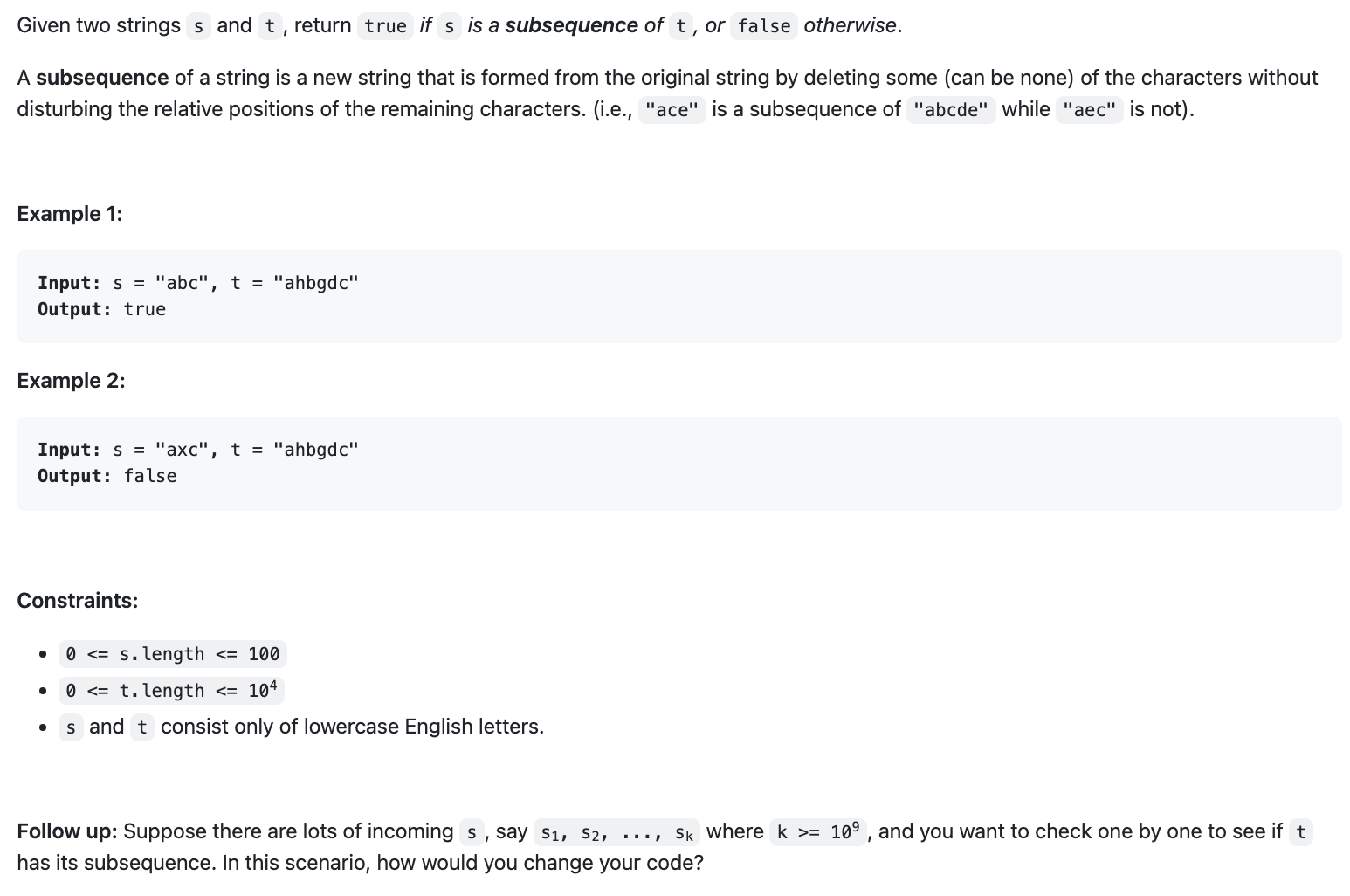 def isSubsequence(self, s: str, t: str) -> bool: