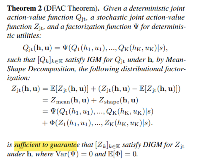 즉, 가 Q를 IGM 조건을 만족시키며 factorize 할 수 있는 함수라 했을 때 이 함수를 똑같이 distributional value function Z에 적용하는 것은 Z가 DIGM 조건을 만족하기에 충분하지 않다는 것이다!