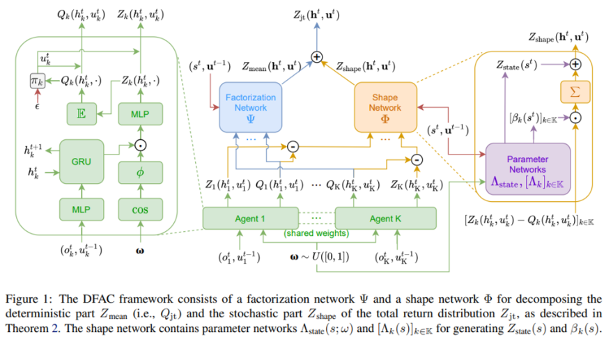 1) Mean-shape decomposition → IGM을 깨지 않고 기존의 vlaue function factorization(VDN, QMIX)를 DFAC variant로 변형가능