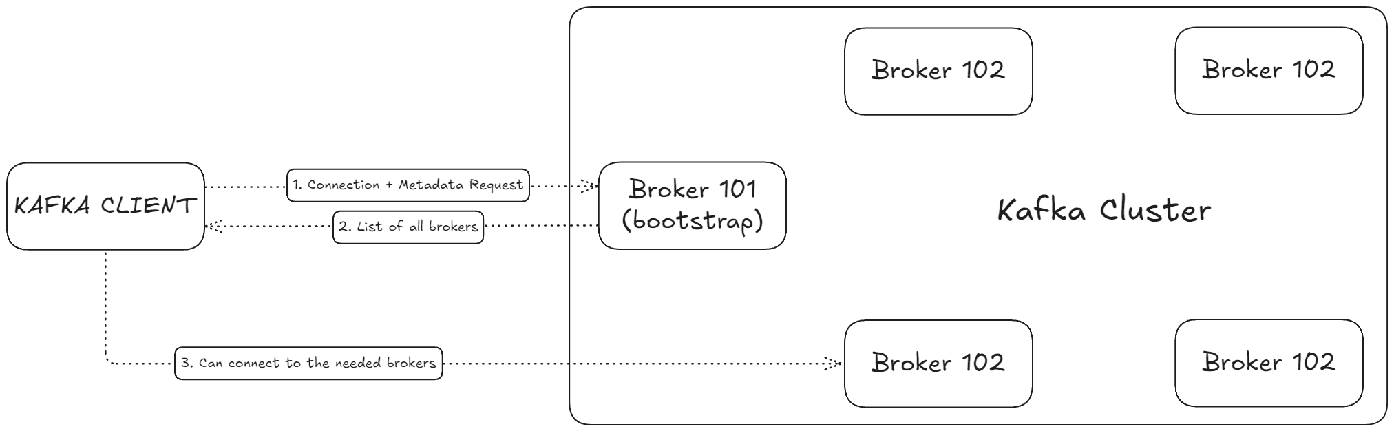 브로커 101만 부트스트랩이라고 표시했지만 사실은 모든 브로커가 부트스트랩 서버이다.