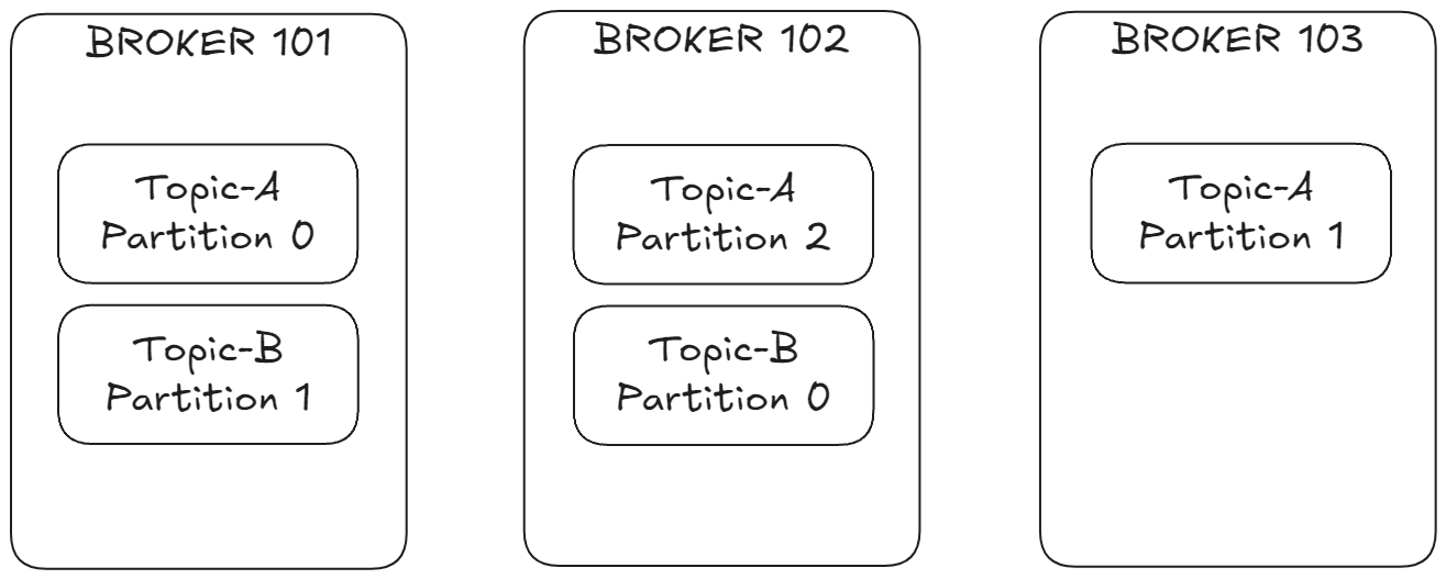 브로커마다 저장하는 파티션이 다르며, 어떤 브로커는 특정 토픽의 파티션을 전혀 갖지 않을 수도 있다.