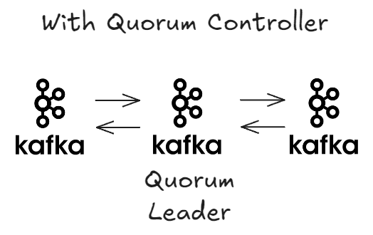 - Quorum Controller가 있는 경우, Kafka 브로커들만 존재하고, 그 중 하나가 Quorum 리더가 된다.
