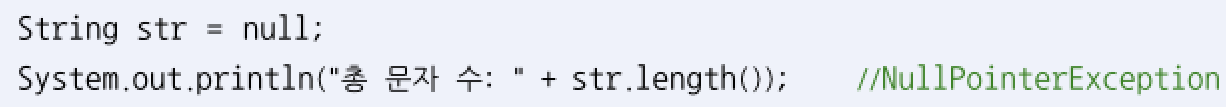 : 변수가 null인 상태에서 객체의 데이터나 메소드를 사용하려 할 때 발생
