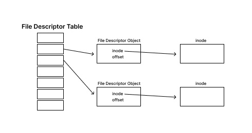 - file descriptor을 open하고, fd에 inode에 대한 포인터와 offset을 저장함