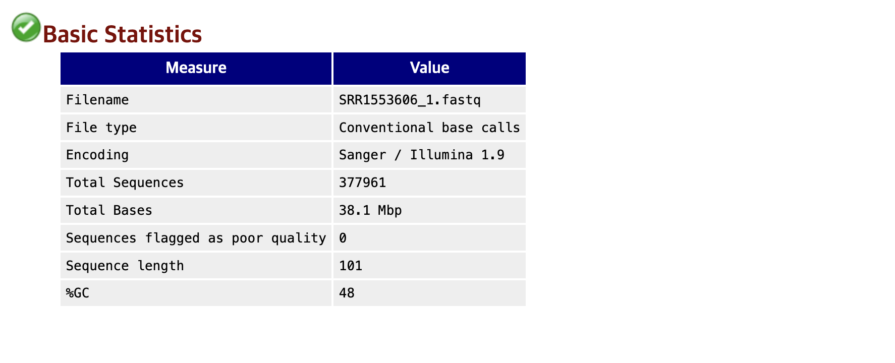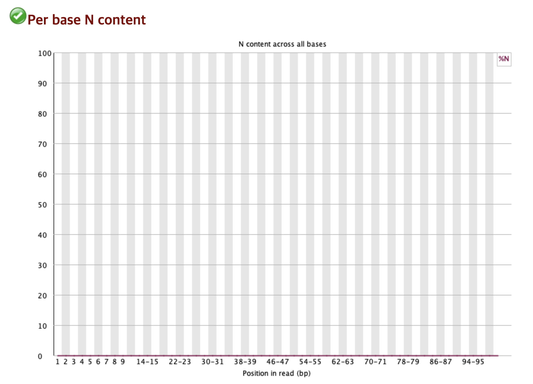 해당 데이터는 N이 완벽하게 없으므로, 어떠한 위치에서도 염기를 판독하지 못한 경우가 없었다라는 의미이다.