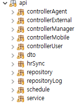 agent, 외부 solution, 관리자, 모바일 서비스, 사용자가 각각 접근하는 controller를 구분하게끔 패키지 구성을 하였습니다.