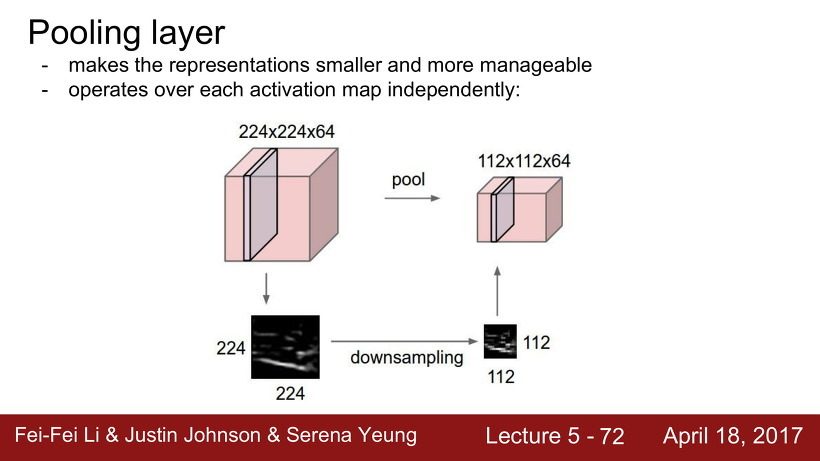 Pooling 은 activation map의 크기를 downsampling 하는 과정을 말한다. 즉, 이미지의 크기를 줄이는 것이다.