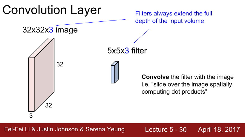 Convolutional Layer에서는 Fully Connected Layer와 달리 input값을 stretch하지 않고 원형을 보존한다.