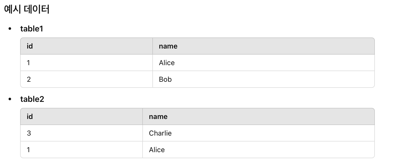 select id, name from table1