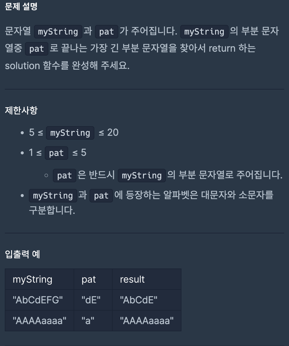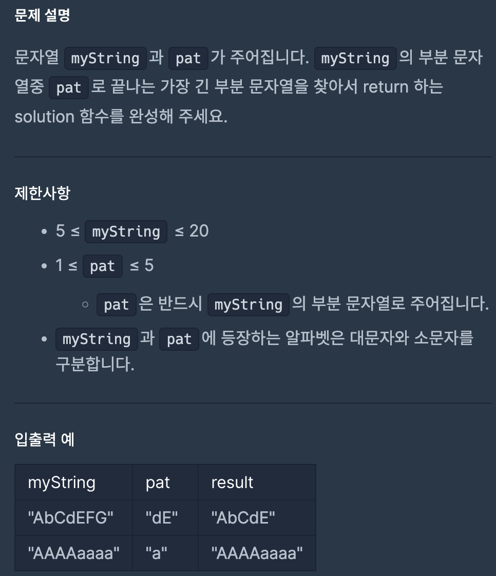``def solution(myString, pat):