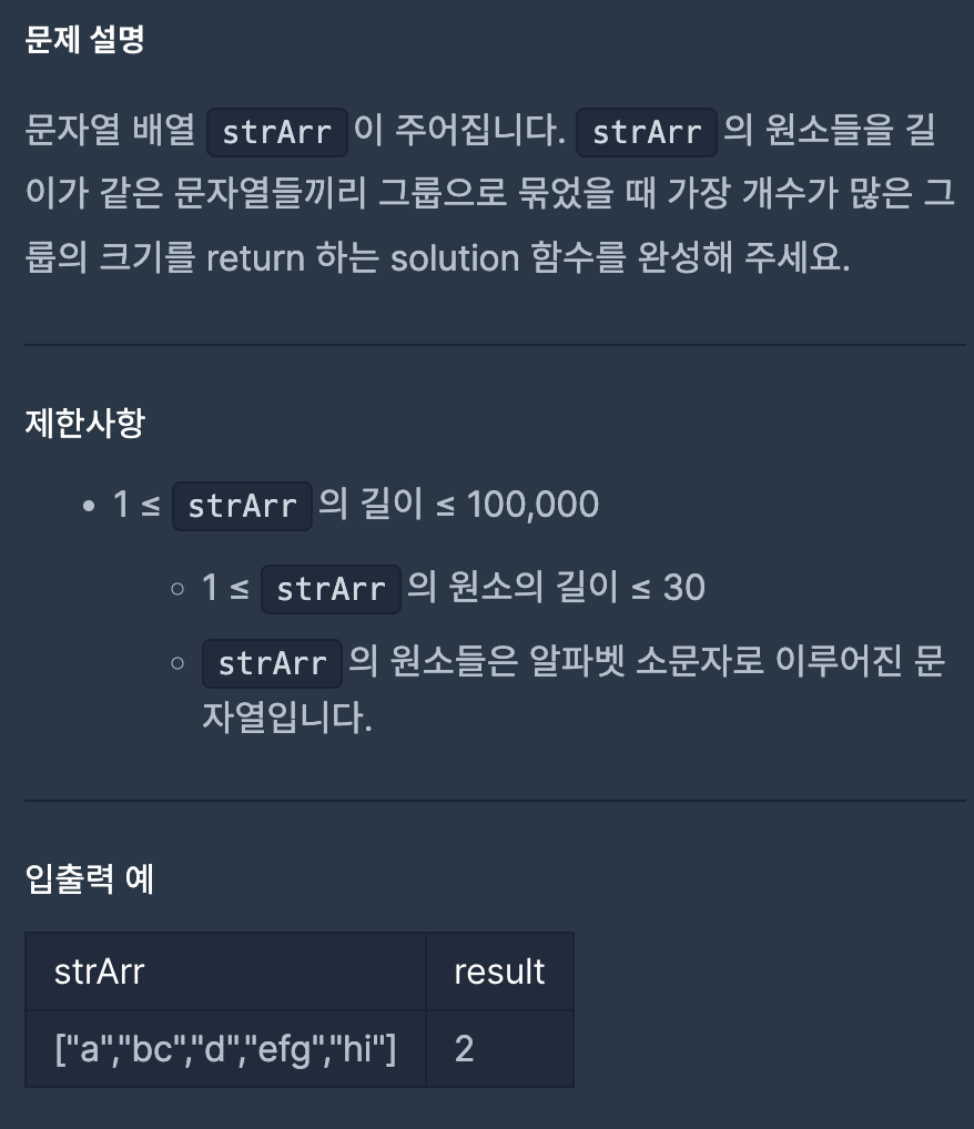 answer = 0 # 길이가 같은 문자열 개수구하고 max값 찍기