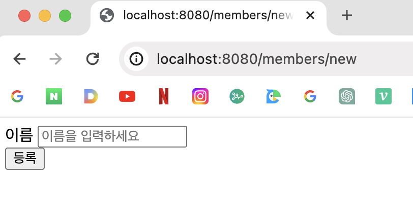 같은 url(/members/new) 일지라도 post, get 장식에 따라 호출되는 함수가 달라진다.