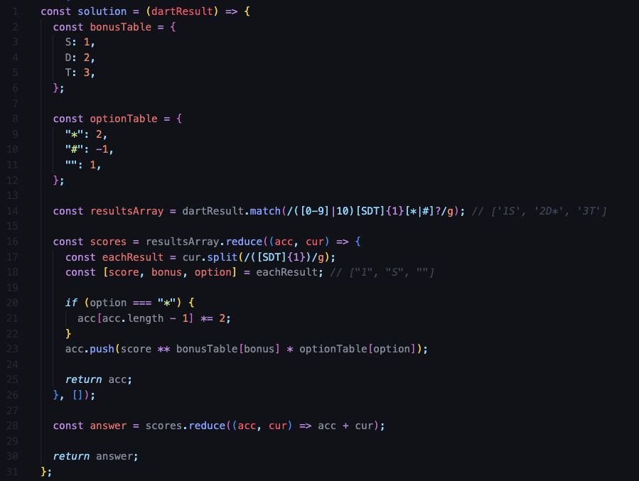 프로그래머스 [1차] 다트 게임 🎯 JavaScript 문제 풀이 (Regex를 이용한 Split 메서드 , 시간복잡도 계산)