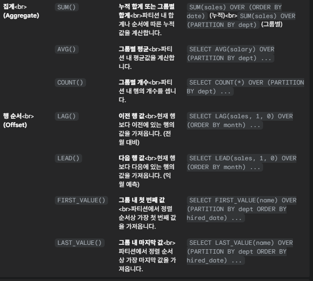 주요 함수/문법: 윈도우 함수의 목적, 정수를 나눌 경우 소숫점 미반영 문제, 순위 함수