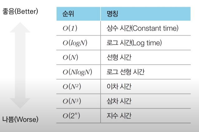 <빅오 표기법을 알고리즘이 수행되는 시간이 좋고 나쁨을 확인 할 수 있음>