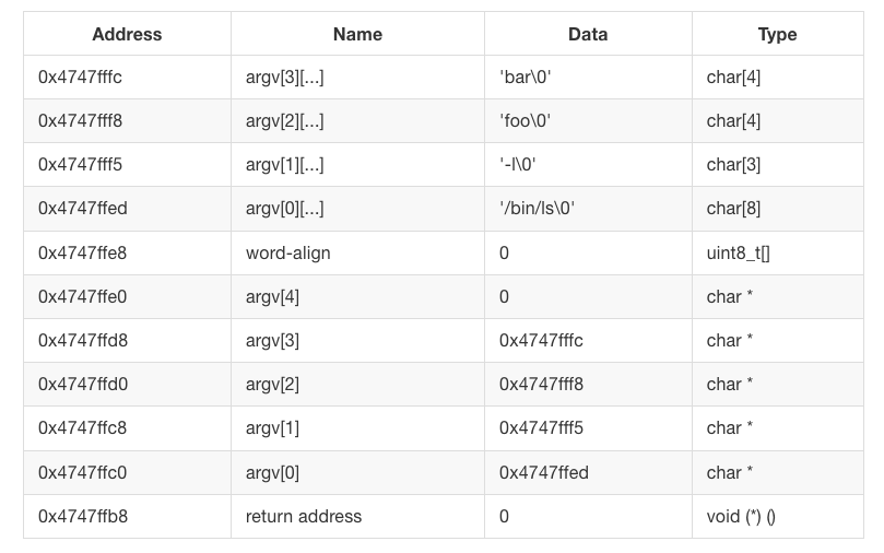 주의해야 할 점은 전부 다 쌓은 후 R -> rsi가 위의 표의 return address 위치가 아니라 argv[0]의 위치를 가리키게 해야 한다는 것이다.