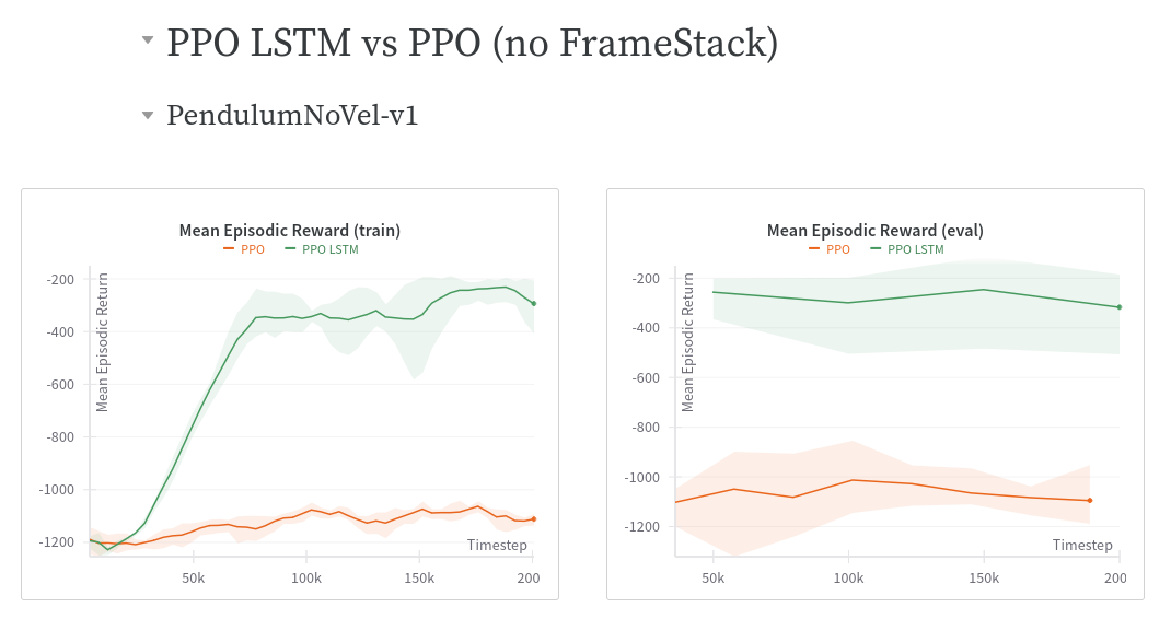 PPO나 A2C에 의한 POLICY는 확률적인데, deterministic=True로 설정해야 .predict() method일 때, 이것은 흔히 더 나은 성능을 보임. training curve에서 (timesteps별 episode reward 함수)는 좋은 평가일 수 있지만 agent의 실제 성능을 과소형가할 수 있다.