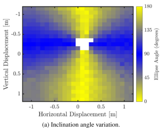 white color에 대응되는 inclination 되는 ellipse들은 타원이 놓여지지 않는 범위이고 따라서 대응되는 틀어진 각도를 얻을 수 없다. 이 현상은 비콘이 부분적으로 또는 완전히 정렬됐기 때문에 발생했기 때문에 타원 형태를 더이상 띄지 않는다.