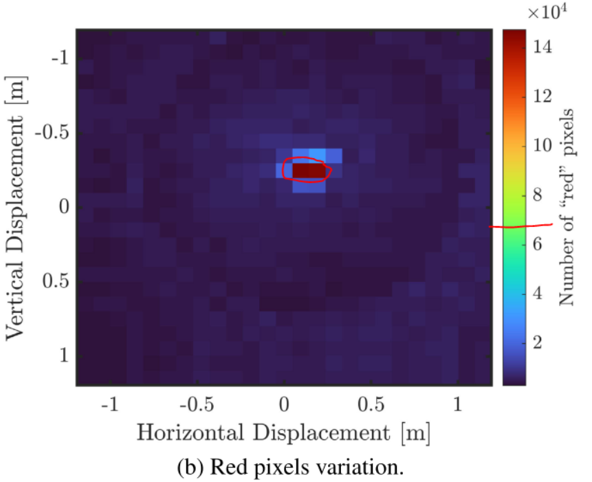 이렇게 x,y 새로운 축 위치로 움직인 후, red pixel의 수를 세면서 N(k)가 update되고, 현재 targe value와 비교한다. N(k)가 최대 N_max(k) 값에 도달하면, N_max(k) 값은 delta N 값만큼으로 N_max(k) 값을 update한다. 실험적으로 여기서는 delta N은 70000이다.