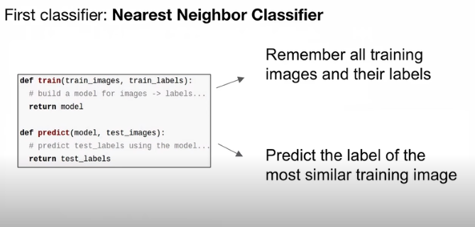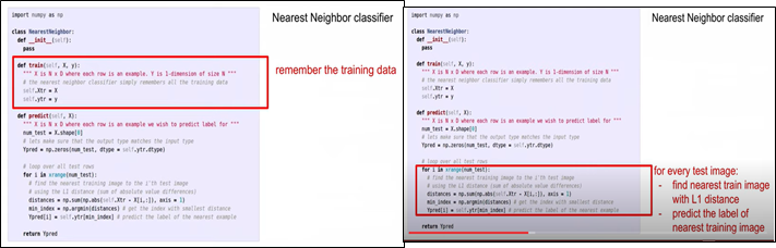 예측단계 : test이미지를 distance 줄에서 l1 distance를 구한다. numpy이용