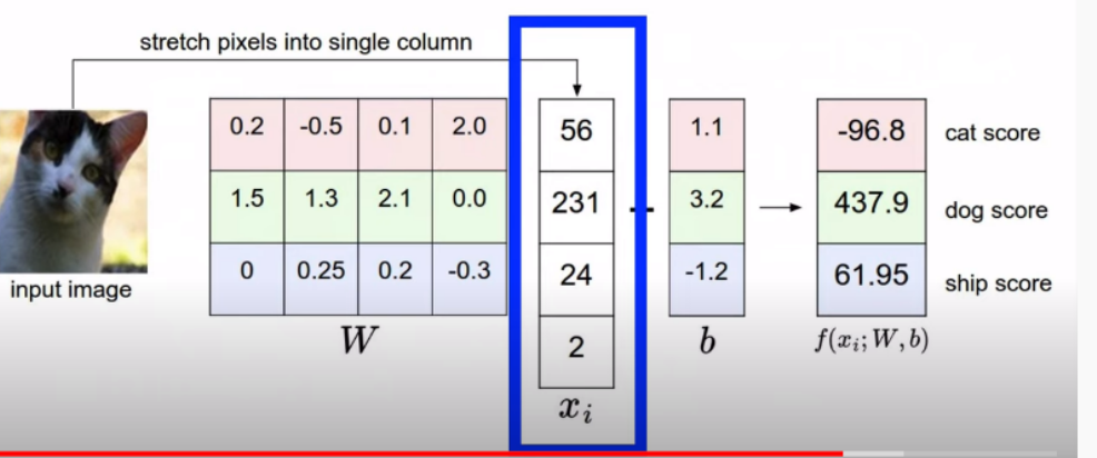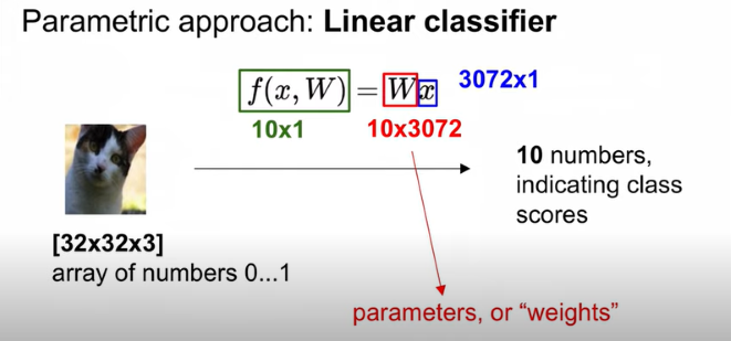 32x32x3 을 행렬의 형태로 펴주게 되면 f(x,W) =Wx 일때,