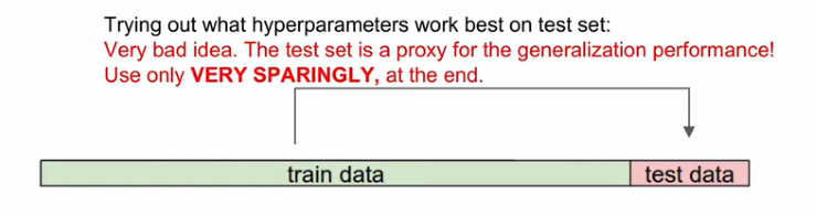 그래서 우리는 하이퍼 파라미터 설정을 하기위해 validation data를 설정한다.