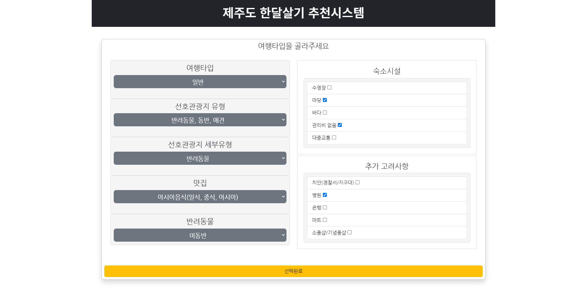 제주도 한달살기 숙소 선택을 위한 추천시스템 구현