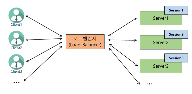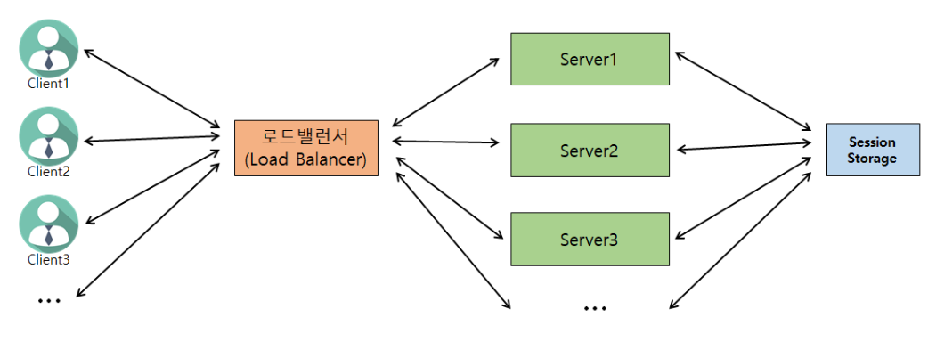-Session storage 가 모든 Client 의 로그인 정보 소유하고 있기 때문에 모든 서버에서 모든 Client의 API 요청을 처리할 수 있다.