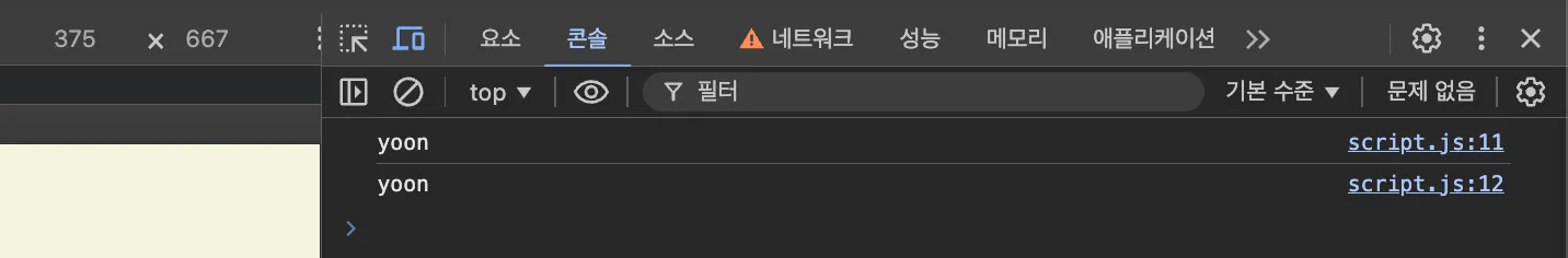 그러나 prompt에 아무것도 입력하지 않으면 js의 코드 실행이 중단됨, 콘솔에도 출력되지 않고 로딩만 … → prompt function을 사용하지 않을 거임