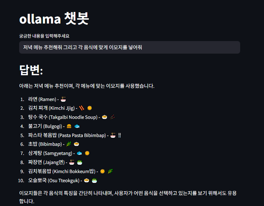 st.title('ollama 챗봇')