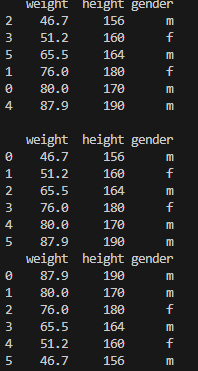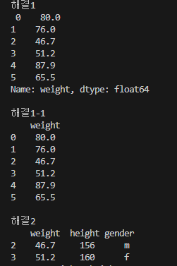 df = pd.DataFrame(data, columns=['weight', 'height', 'gender'])