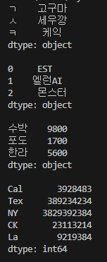 sr2 = pd.Series(['EST', '엘런AI', '몬스터'])