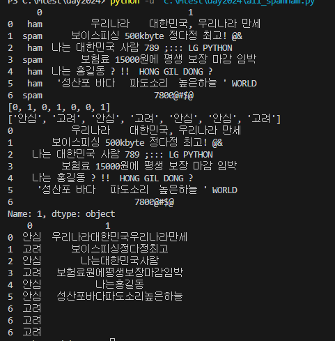 re_spam = ['안심' if i == 0 else '고려' for i in spam]
