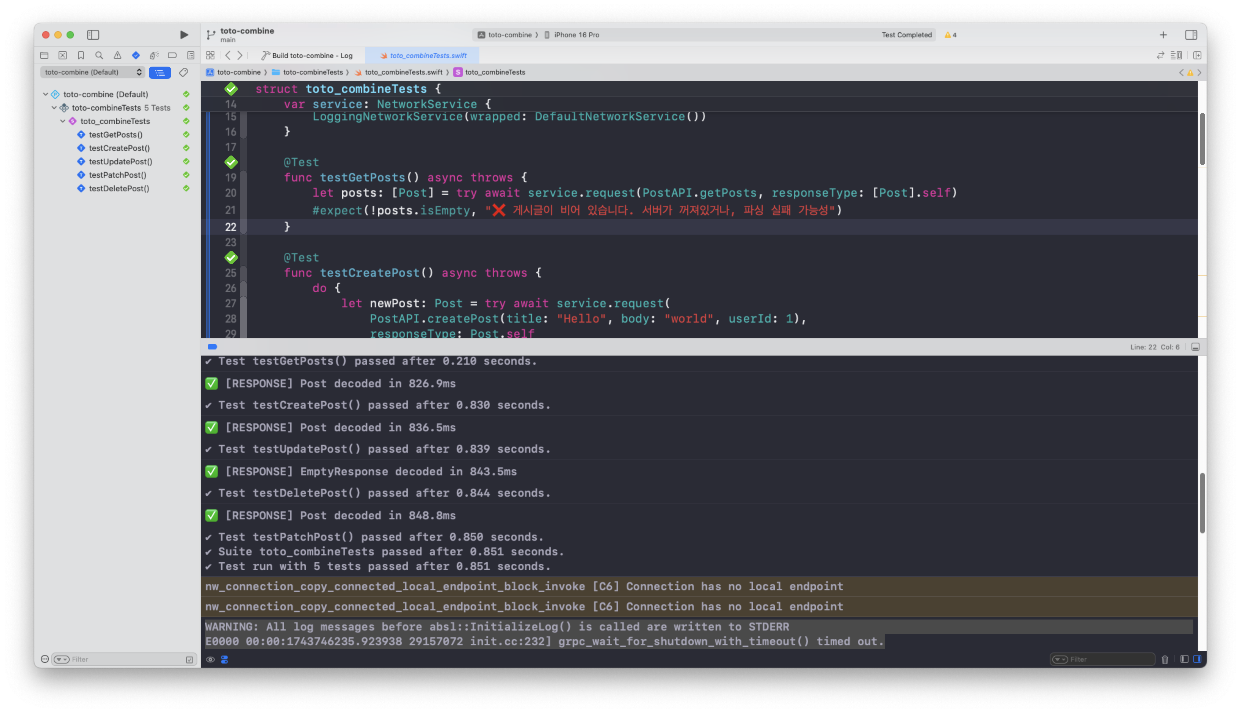 #expect(!posts.isEmpty, "❌ 게시글이 비어 있습니다. 서버가 꺼져있거나, 파싱 실패 가능성")