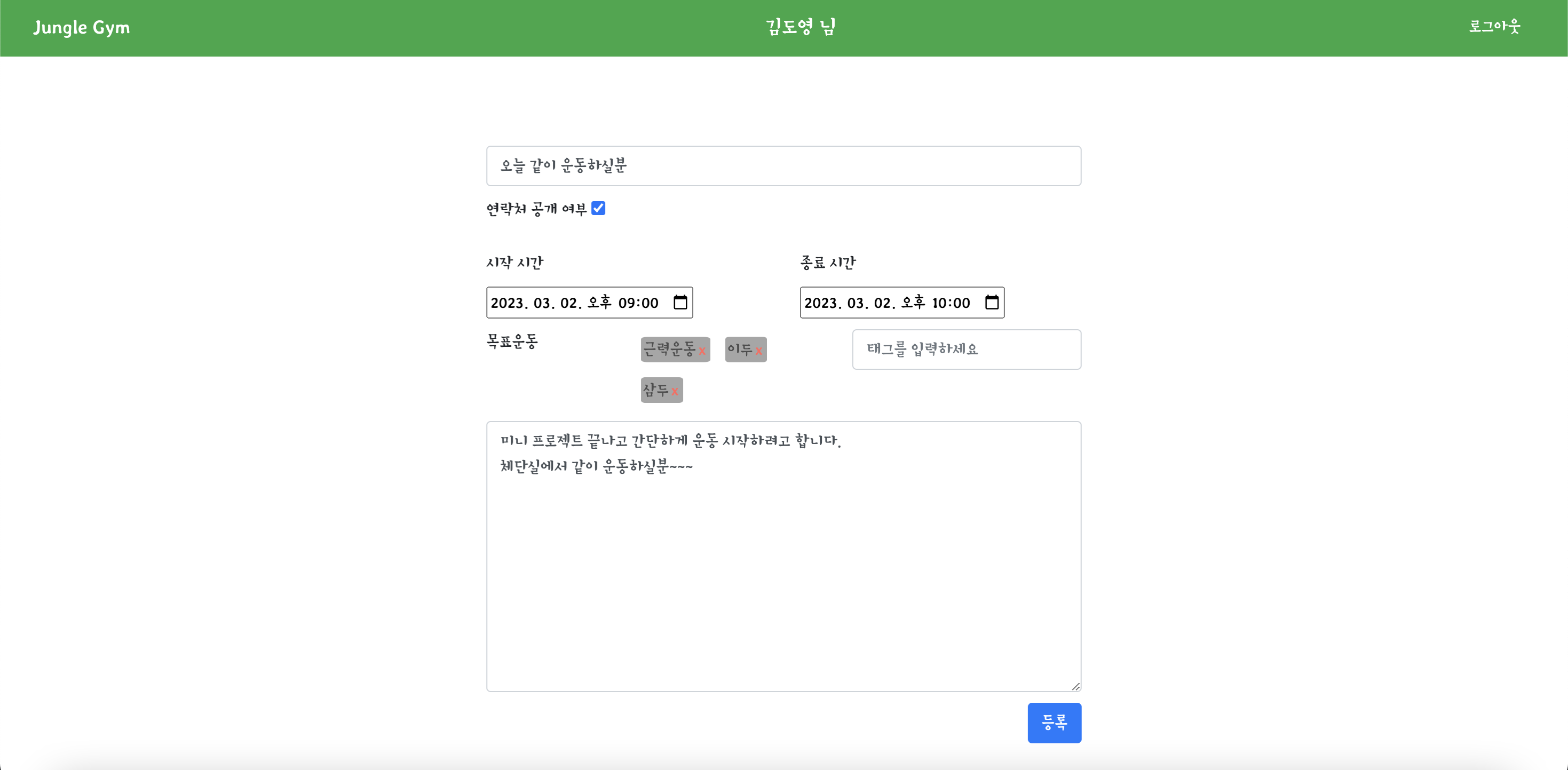 - 운동 계획을 올리고 운동 메이트를 구하는 서비스를 만들자고 정함