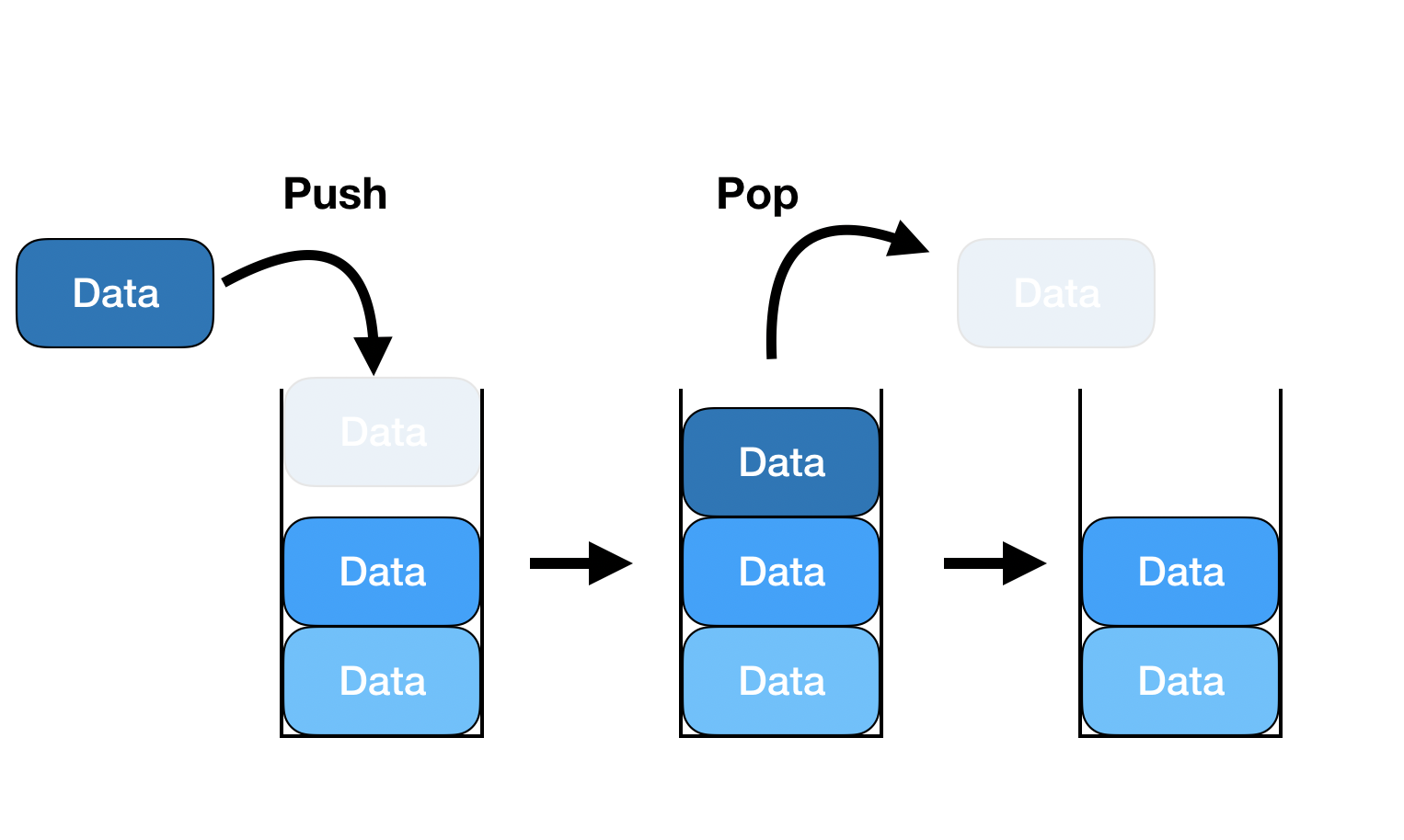 스택은 기본적으로 LIFO(last in first out,후입선출)구조 이다. 스택에서는 마지막으로 추가된 요소가 제일 먼저 제거된다.