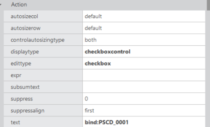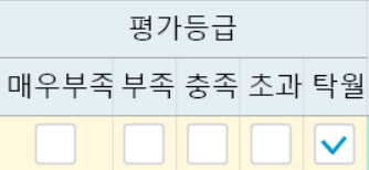 그리드에 바인딩 하여 PSCD_0001~0005 값들을 넣어줌으로써 평가등급에 따른 체크박스를 표현할 수 있다.